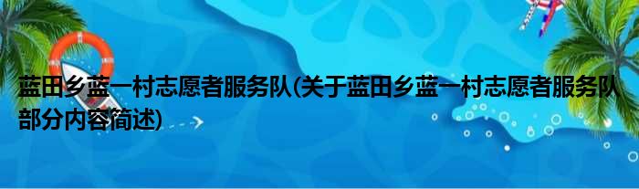 蓝田乡蓝一村志愿者服务队(关于蓝田乡蓝一村志愿者服务队部分内容简述)