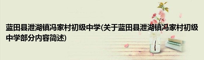蓝田县泄湖镇冯家村初级中学(关于蓝田县泄湖镇冯家村初级中学部分内容简述)