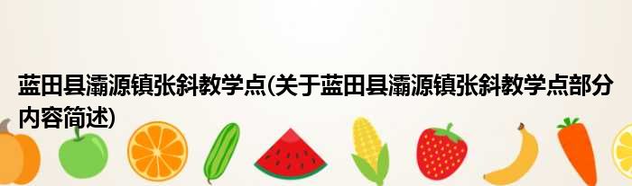 蓝田县灞源镇张斜教学点(关于蓝田县灞源镇张斜教学点部分内容简述)