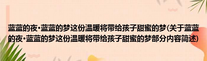 蓝蓝的夜·蓝蓝的梦这份温暖将带给孩子甜蜜的梦(关于蓝蓝的夜·蓝蓝的梦这份温暖将带给孩子甜蜜的梦部分内容简述)