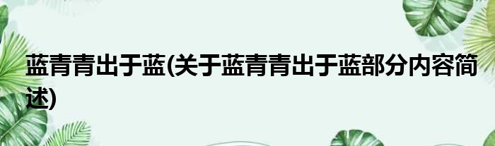 蓝青青出于蓝(关于蓝青青出于蓝部分内容简述)