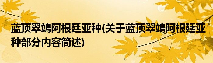 蓝顶翠鴗阿根廷亚种(关于蓝顶翠鴗阿根廷亚种部分内容简述)