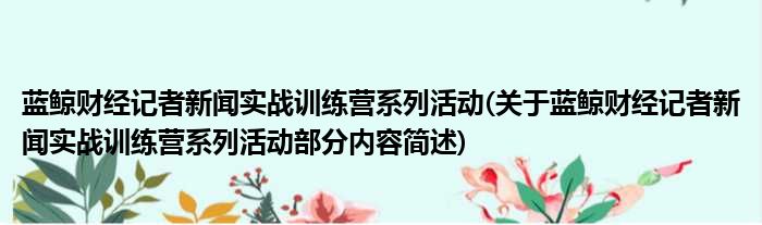 蓝鲸财经记者新闻实战训练营系列活动(关于蓝鲸财经记者新闻实战训练营系列活动部分内容简述)