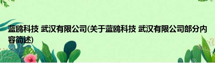 蓝鸥科技 武汉有限公司(关于蓝鸥科技 武汉有限公司部分内容简述)