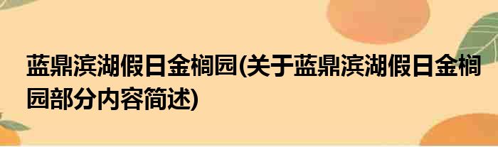 蓝鼎滨湖假日金榈园(关于蓝鼎滨湖假日金榈园部分内容简述)