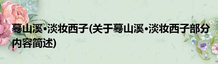蓦山溪·淡妆西子(关于蓦山溪·淡妆西子部分内容简述)