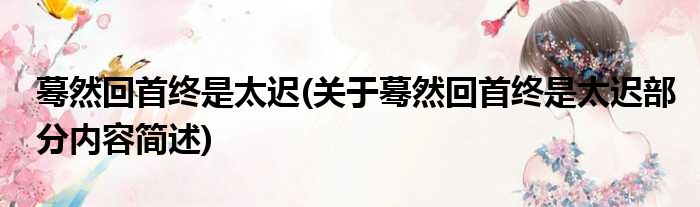 蓦然回首终是太迟(关于蓦然回首终是太迟部分内容简述)