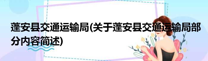 蓬安县交通运输局(关于蓬安县交通运输局部分内容简述)