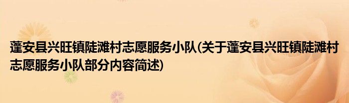 蓬安县兴旺镇陡滩村志愿服务小队(关于蓬安县兴旺镇陡滩村志愿服务小队部分内容简述)