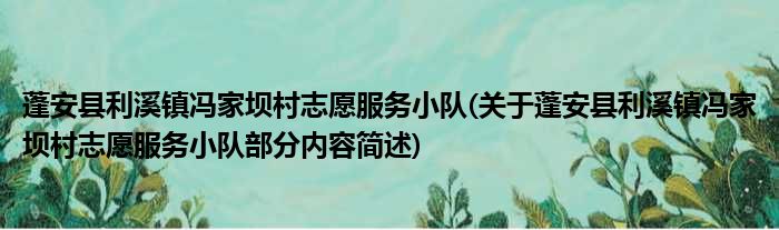 蓬安县利溪镇冯家坝村志愿服务小队(关于蓬安县利溪镇冯家坝村志愿服务小队部分内容简述)