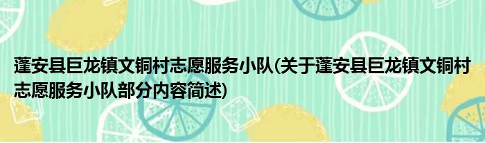 蓬安县巨龙镇文铜村志愿服务小队(关于蓬安县巨龙镇文铜村志愿服务小队部分内容简述)