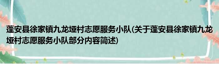 蓬安县徐家镇九龙垭村志愿服务小队(关于蓬安县徐家镇九龙垭村志愿服务小队部分内容简述)