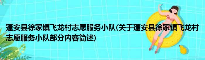 蓬安县徐家镇飞龙村志愿服务小队(关于蓬安县徐家镇飞龙村志愿服务小队部分内容简述)