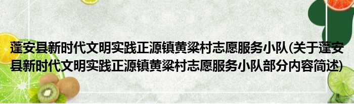 蓬安县新时代文明实践正源镇黄粱村志愿服务小队(关于蓬安县新时代文明实践正源镇黄粱村志愿服务小队部分内容简述)