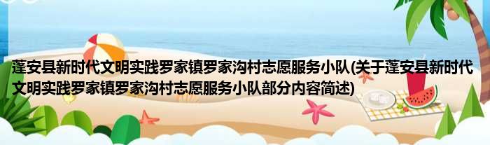 蓬安县新时代文明实践罗家镇罗家沟村志愿服务小队(关于蓬安县新时代文明实践罗家镇罗家沟村志愿服务小队部分内容简述)