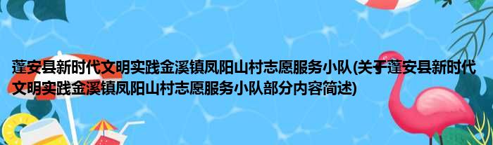 蓬安县新时代文明实践金溪镇凤阳山村志愿服务小队(关于蓬安县新时代文明实践金溪镇凤阳山村志愿服务小队部分内容简述)