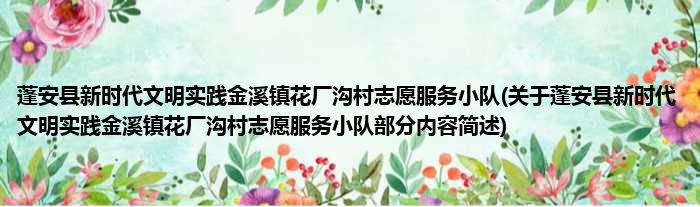 蓬安县新时代文明实践金溪镇花厂沟村志愿服务小队(关于蓬安县新时代文明实践金溪镇花厂沟村志愿服务小队部分内容简述)
