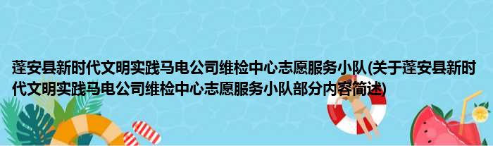蓬安县新时代文明实践马电公司维检中心志愿服务小队(关于蓬安县新时代文明实践马电公司维检中心志愿服务小队部分内容简述)