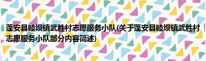 蓬安县睦坝镇武胜村志愿服务小队(关于蓬安县睦坝镇武胜村志愿服务小队部分内容简述)