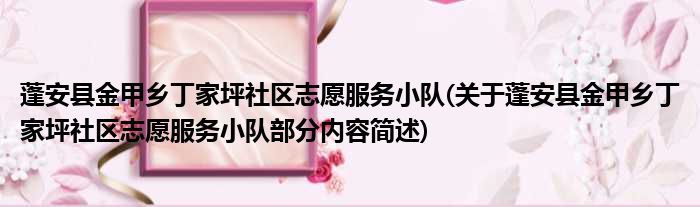 蓬安县金甲乡丁家坪社区志愿服务小队(关于蓬安县金甲乡丁家坪社区志愿服务小队部分内容简述)