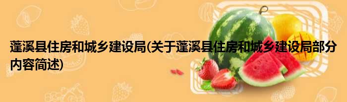 蓬溪县住房和城乡建设局(关于蓬溪县住房和城乡建设局部分内容简述)