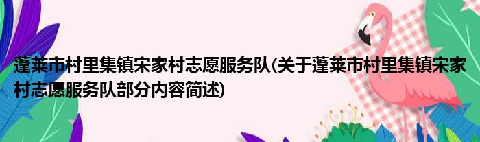 蓬莱市村里集镇宋家村志愿服务队(关于蓬莱市村里集镇宋家村志愿服务队部分内容简述)
