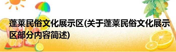 蓬莱民俗文化展示区(关于蓬莱民俗文化展示区部分内容简述)