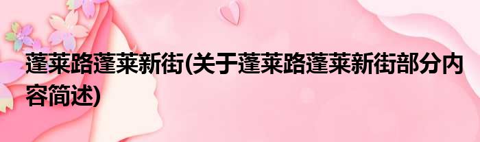 蓬莱路蓬莱新街(关于蓬莱路蓬莱新街部分内容简述)