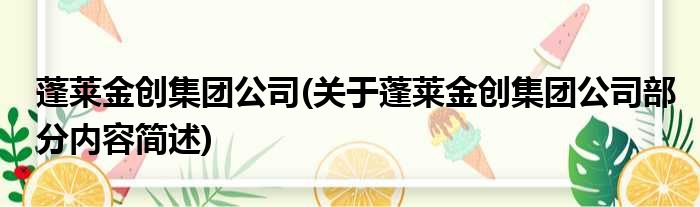 蓬莱金创集团公司(关于蓬莱金创集团公司部分内容简述)