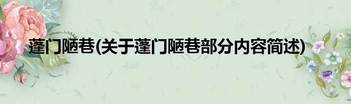 蓬门陋巷(关于蓬门陋巷部分内容简述)