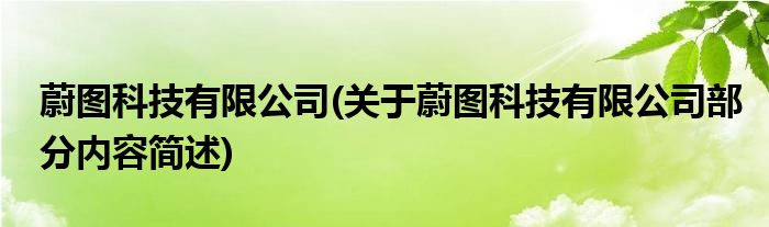 蔚图科技有限公司(关于蔚图科技有限公司部分内容简述)