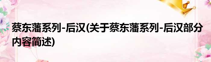 导读 大家好,今天小方来说说一篇关于蔡东藩系列-后汉,关于蔡东藩系列-后汉部分内容简述的文章,那么现在就为大家来简单介绍下,希望对各位小伙
