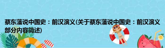 导读 大家好,今天小方来说说一篇关于蔡东藩说中国史:前汉演义,关于蔡东藩说中国史:前汉演义部分内容简述的文章,那么现在就为大家来简单介绍