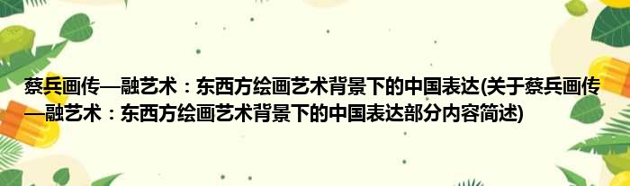 导读 大家好,今天小方来说说一篇关于蔡兵画传—融艺术:东西方绘画艺术背景下的中国表达,关于蔡兵画传—融艺术:东西方绘画艺术背景下的中国表