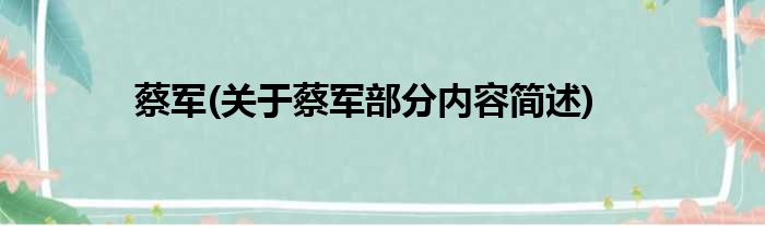 大家好,今天小方来说说一篇关于蔡军,关于蔡军部分内容简述的文章,那么现在就为大家来简单介绍下,希望对各位小伙伴们有所帮助。