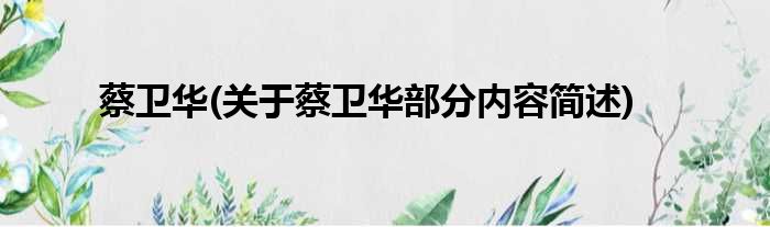 大家好,今天小方来说说一篇关于蔡卫华,关于蔡卫华部分内容简述的文章,那么现在就为大家来简单介绍下,希望对各位小伙伴们有所帮助。