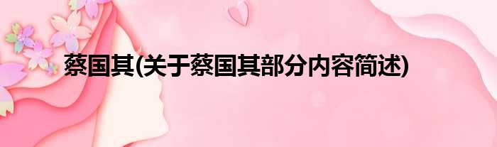 导读 大家好,今天小方来说说一篇关于蔡国其,关于蔡国其部分内容简述的文章,那么现在就为大家来简单介绍下,希望对各位小伙伴们有所帮助。