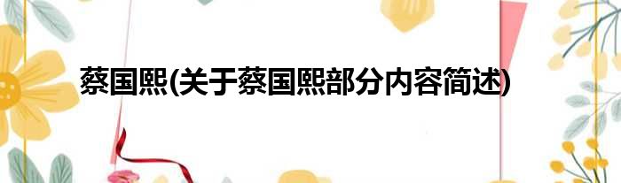 蔡国熙(关于蔡国熙部分内容简述)