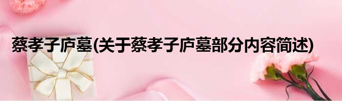 导读 大家好,今天小方来说说一篇关于蔡孝子庐墓,关于蔡孝子庐墓部分内容简述的文章,那么现在就为大家来简单介绍下,希望对各位小伙伴们有所帮