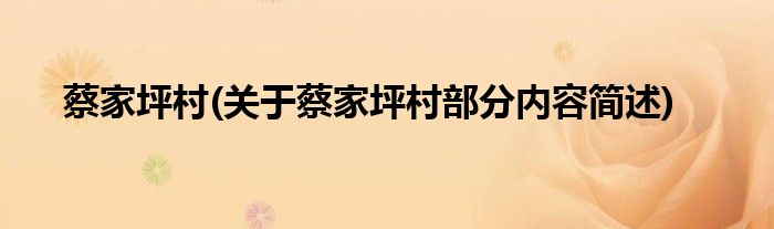 蔡家坪村(关于蔡家坪村部分内容简述)