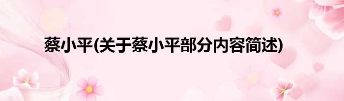 导读 大家好,今天小方来说说一篇关于蔡小平,关于蔡小平部分内容简述的文章,那么现在就为大家来简单介绍下,希望对各位小伙伴们有所帮助。