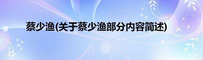 导读 大家好,今天小方来说说一篇关于蔡少渔,关于蔡少渔部分内容简述的文章,那么现在就为大家来简单介绍下,希望对各位小伙伴们有所帮助。