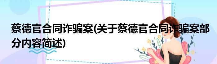 蔡德官合同诈骗案(关于蔡德官合同诈骗案部分内容简述)