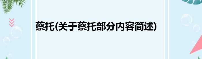 导读 大家好,今天小方来说说一篇关于蔡托,关于蔡托部分内容简述的文章,那么现在就为大家来简单介绍下,希望对各位小伙伴们有所帮助。