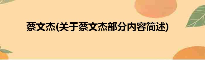 大家好,今天小方来说说一篇关于蔡文杰,关于蔡文杰部分内容简述的文章,那么现在就为大家来简单介绍下,希望对各位小伙伴们有所帮助。