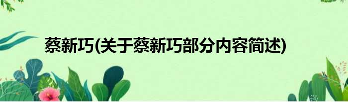 导读 大家好,今天小方来说说一篇关于蔡新巧,关于蔡新巧部分内容简述的文章,那么现在就为大家来简单介绍下,希望对各位小伙伴们有所帮助。