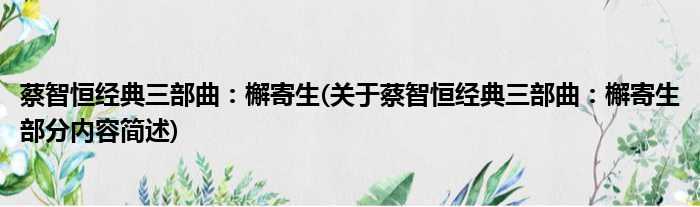 导读 大家好,今天小方来说说一篇关于蔡智恒经典三部曲:檞寄生,关于蔡智恒经典三部曲:檞寄生部分内容简述的文章,那么现在就为大家来简单介绍