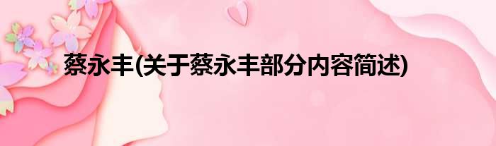 大家好,今天小方来说说一篇关于蔡永丰,关于蔡永丰部分内容简述的文章,那么现在就为大家来简单介绍下,希望对各位小伙伴们有所帮助。
