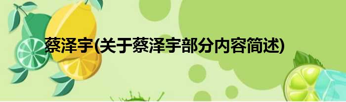 蔡泽宇(关于蔡泽宇部分内容简述)