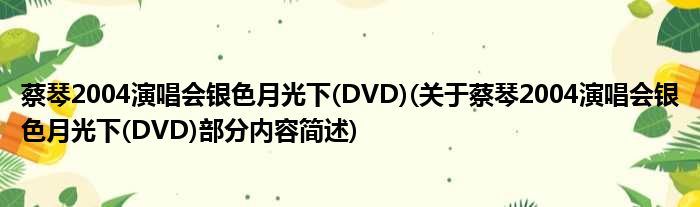 蔡琴2004演唱会银色月光下(DVD)(关于蔡琴2004演唱会银色月光下(DVD)部分内容简述)